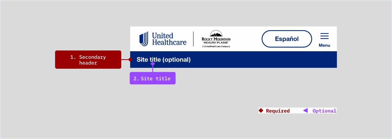 - Secondary header: required if the main header has more than five navigation items
